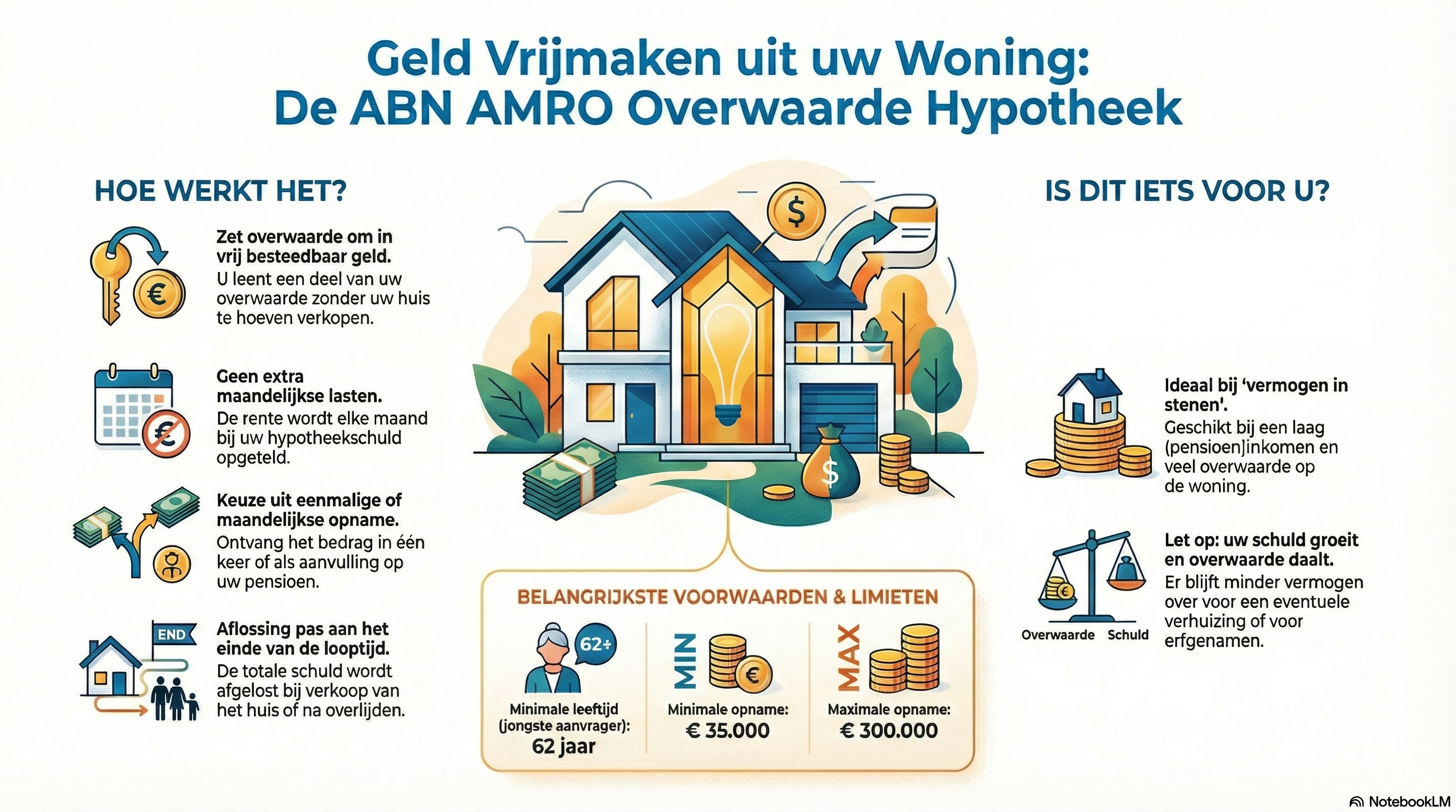 Klaar voor de Toekomst? Met de Overwaarde Hypotheek kunt u tot maximaal €300.000 opnemen (minimaal €35.000).